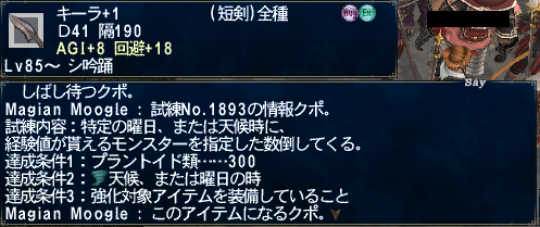 命中キーラ+1→D41 隔190 DEX+8 命中+14