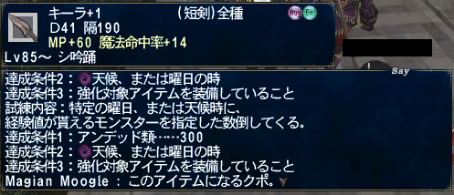 魔命キーラ+1→D41 隔190 MP+60 魔法命中+14