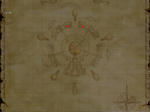 左が庭から入った神殿の地図で、庭の(G-5)から入ると(F-4)の場所へ。庭の(I-5)から入ると(J-4)の場所からになります。右が地下の地図(赤丸K-3から)です。