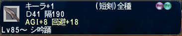 回避キーラ+1→D41 隔190 AGI+8 回避+18