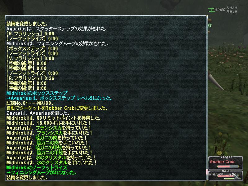 今回はボヤーダ樹の比較的入り口側に生息しているマンドラとウサギとカニをターゲットに、剣の舞+ドレインサンバ、猛攻フェローを引っさげて突撃しました。
