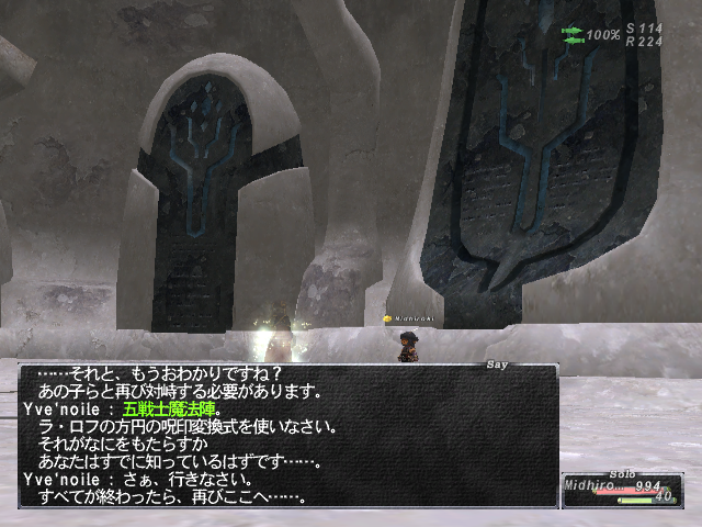 暗黒の耳ポイしたことをちょっと攻められつつ、神威受けなおしの説明を聞きます。