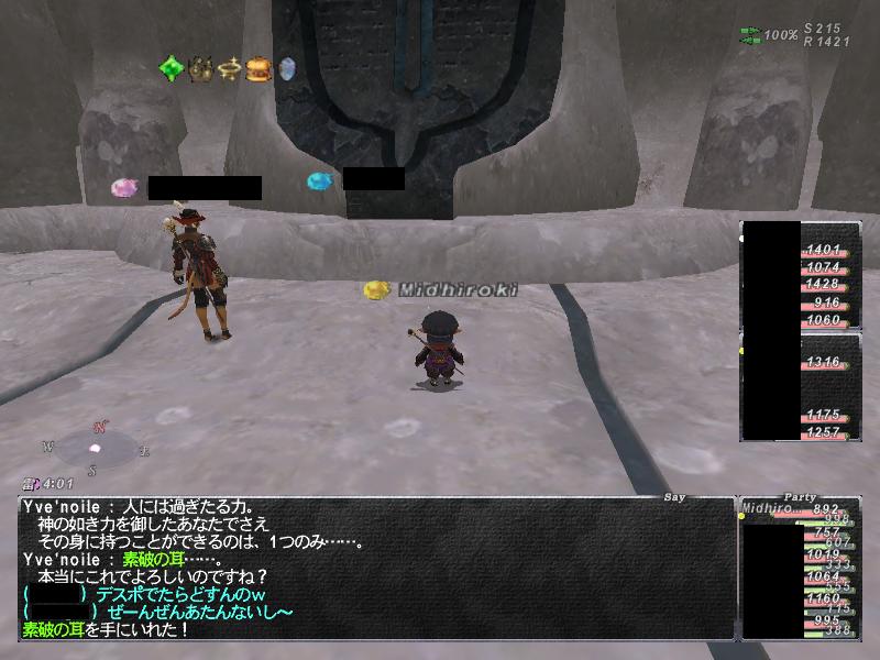 その後D2を配り終えてその後PTは解散しました。終わり際にわかったことですが、リーダーの身内のZM進めるために神威を企画しているみたいでした。神威クリアするとAAやらなくていいですし、耳も取れるし一石二鳥ですしね。