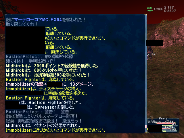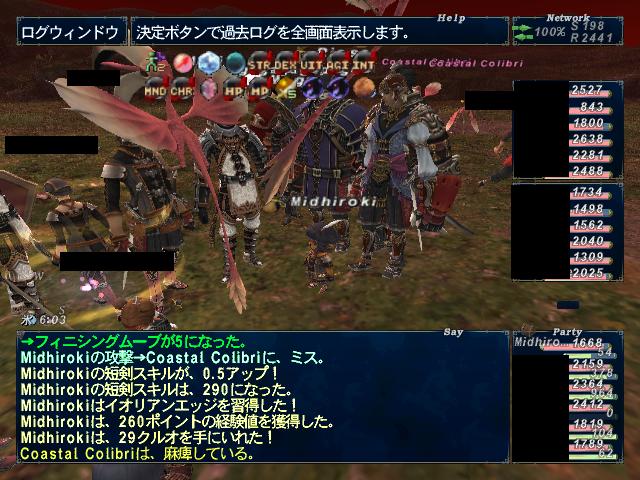 元々後衛育ちの私はアタフタしながら /as マクロを駆使してコリブリさんを倒していました。ここのコリブリは赤色発光しない分青、白、黄〆切が育ちやすいらしく、しばらくしたらぽこじゃか延長箱出てました。
