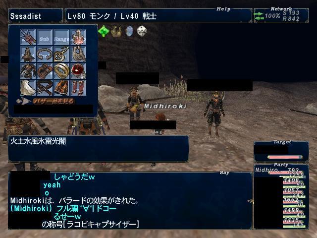 実際はこっちの装備。百烈拳前提なので帯とかは装備しません('Д')