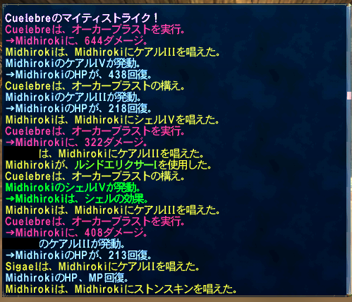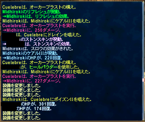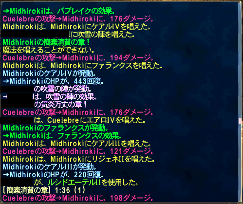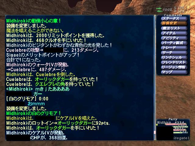 途中MPがやばげかなーっと思いエーテル等を使いましたがコンバートリキャまで上手く簡素+ケアルIVとドレインアスピルでまわしていければMP持ちそうでした。