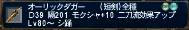 オーリックダガー ●● 【短剣】 D39 隔201 モクシャ+10 二刀流効果アップ Lv80~ シ踊